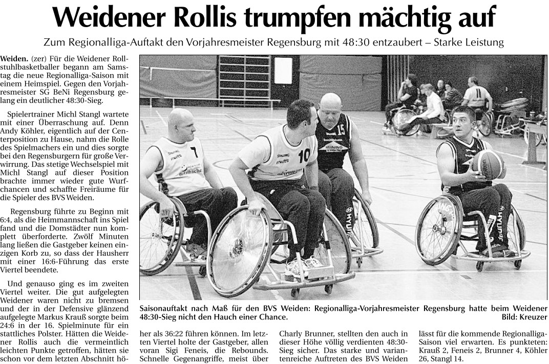 weiterhin die Oberpfälzer Krone im Rollstuhlbasketball in Weiden